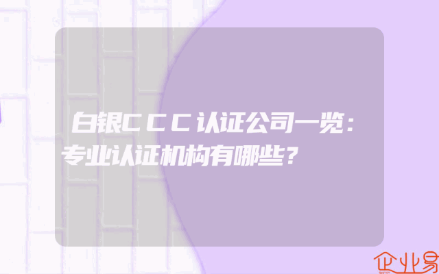 - 白银CCC认证公司一览:专业认证机构有哪些?