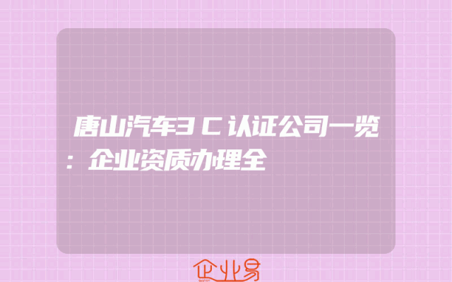 - 唐山汽车3C认证公司一览:企业资质办理全