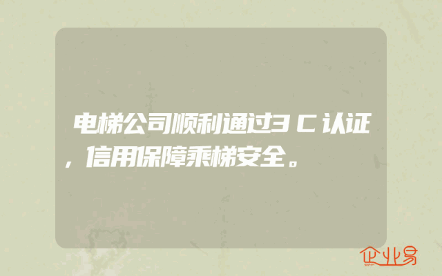 - 电梯公司顺利通过3C认证,信用保障乘梯安全。