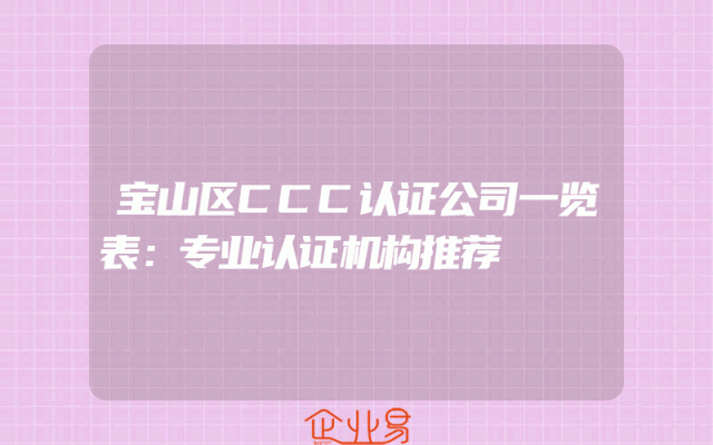 - 宝山区CCC认证公司一览表:专业认证机构推荐