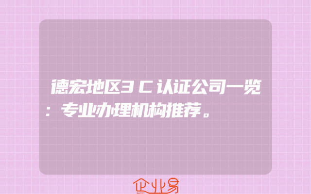 - 德宏地区3C认证公司一览:专业办理机构推荐。