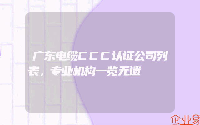 - 广东电缆CCC认证公司列表,专业机构一览无遗
