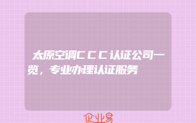- 太原空调CCC认证公司一览,专业办理认证服务