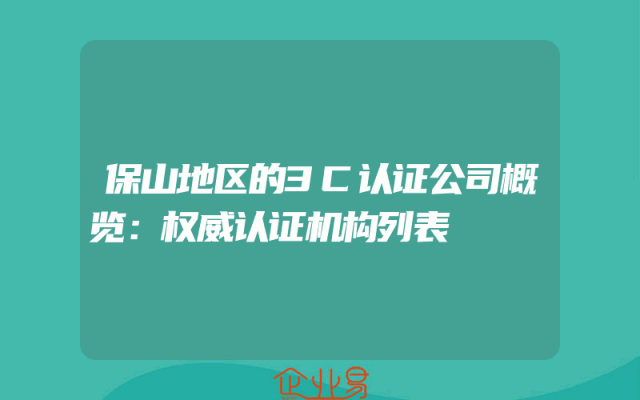 - 保山地区的3C认证公司概览:权威认证机构列表