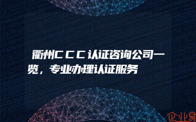 - 衢州CCC认证咨询公司一览,专业办理认证服务