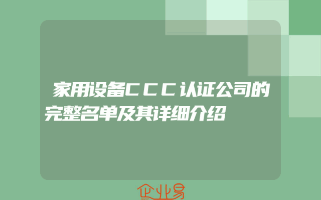 - 家用设备CCC认证公司的完整名单及其详细介绍