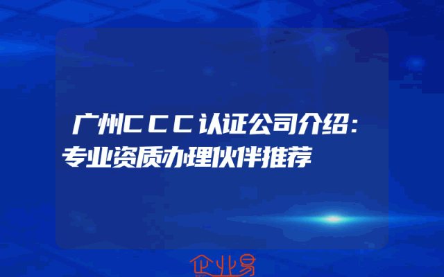 - 广州CCC认证公司介绍:专业资质办理伙伴推荐