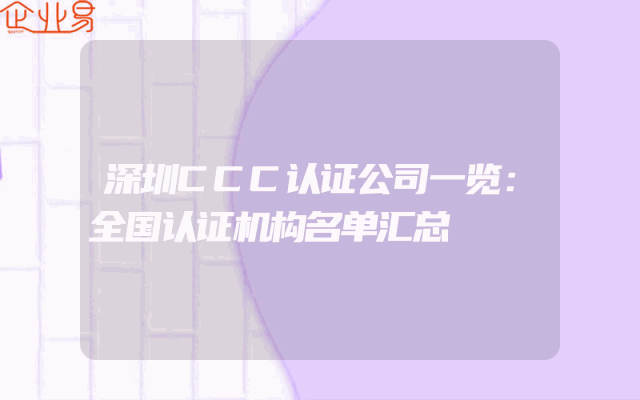 - 深圳CCC认证公司一览:全国认证机构名单汇总