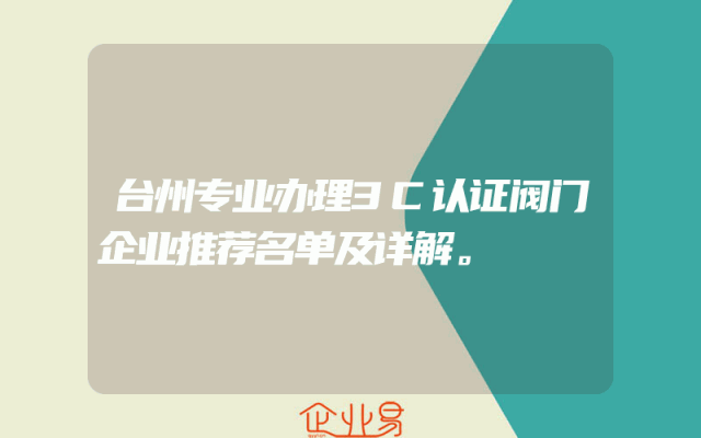 - 台州专业办理3C认证阀门企业推荐名单及详解。