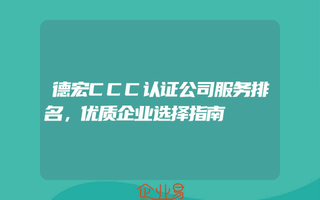 - 德宏CCC认证公司服务排名,优质企业选择指南