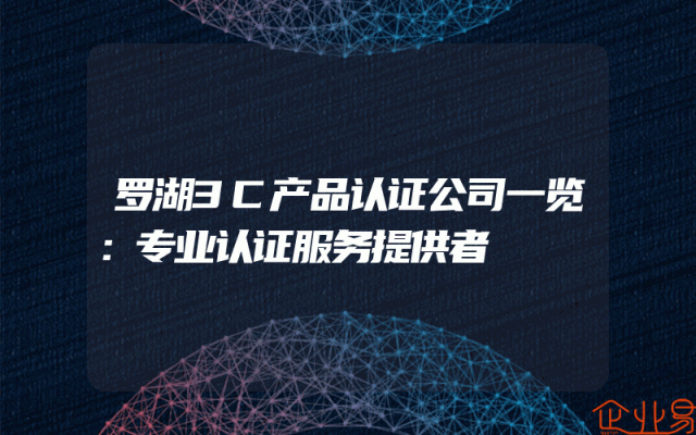 - 罗湖3C产品认证公司一览:专业认证服务提供者