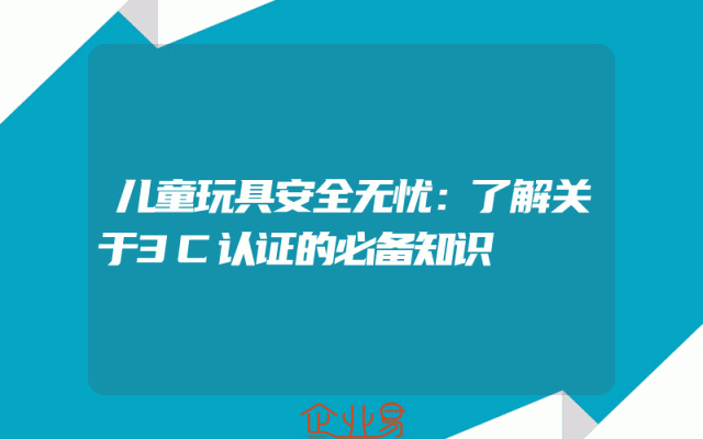 - 儿童玩具安全无忧:了解关于3C认证的必备知识