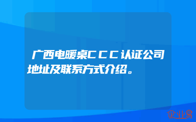 - 广西电暖桌CCC认证公司地址及联系方式介绍。