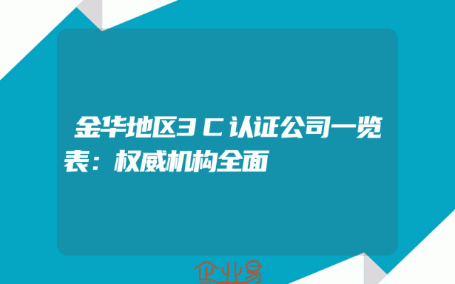 - 金华地区3C认证公司有哪些?专业服务机构概览