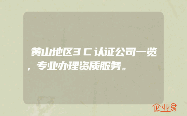 - 黄山地区3C认证公司一览,专业办理资质服务。