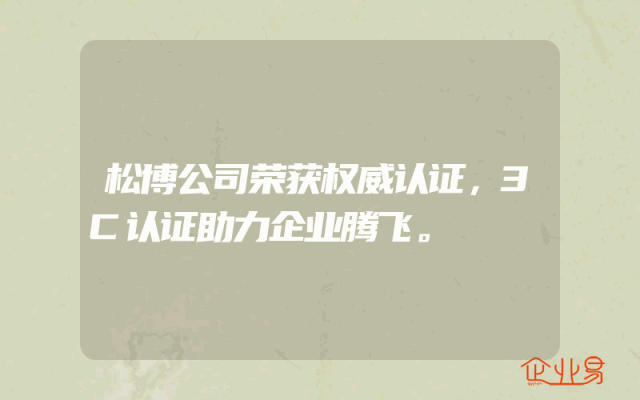 - 松博公司荣获权威认证,3C认证助力企业腾飞。