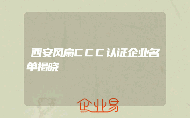 - 西安风扇CCC认证企业名单揭晓