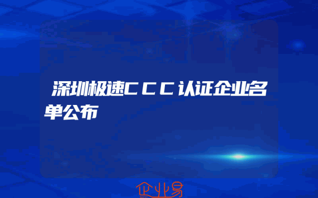- 深圳极速CCC认证企业名单公布