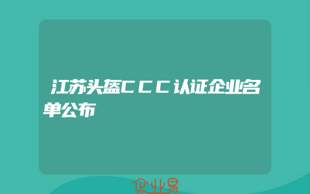 - 江苏头盔CCC认证企业名单公布