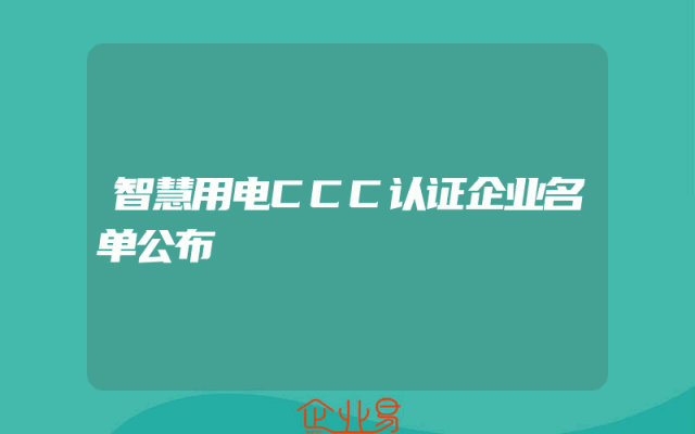 - 智慧用电CCC认证企业名单公布
