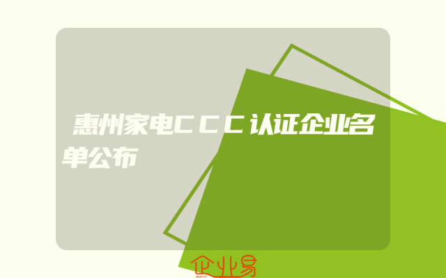 - 惠州家电CCC认证企业名单公布