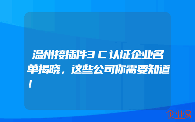 - 温州接插件3C认证企业名单揭晓,这些公司你需要知道!