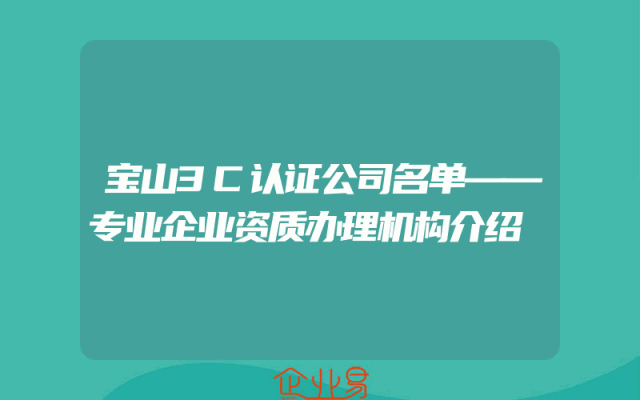 - 宝山3C认证公司名单——专业企业资质办理机构介绍