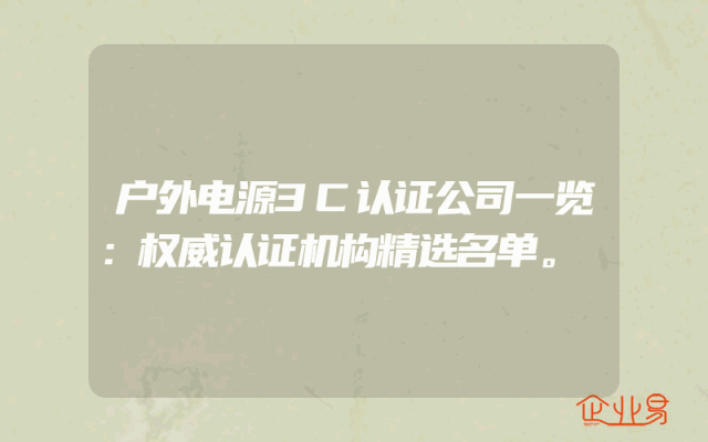 - 户外电源3C认证公司一览:权威认证机构精选名单。