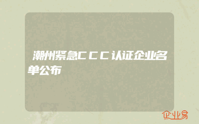 - 潮州紧急CCC认证企业名单公布