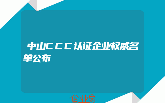 - 中山CCC认证企业权威名单公布