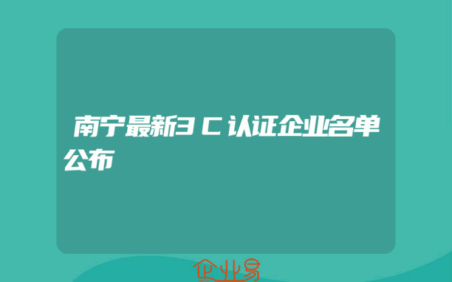 - 南宁最新3C认证企业名单公布