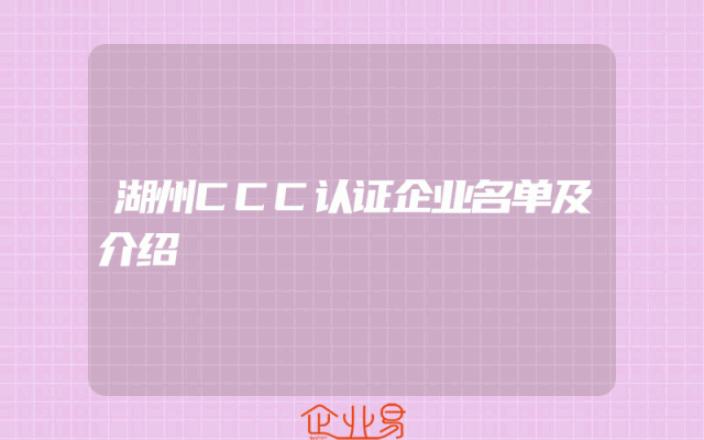 - 湖州CCC认证企业名单及介绍