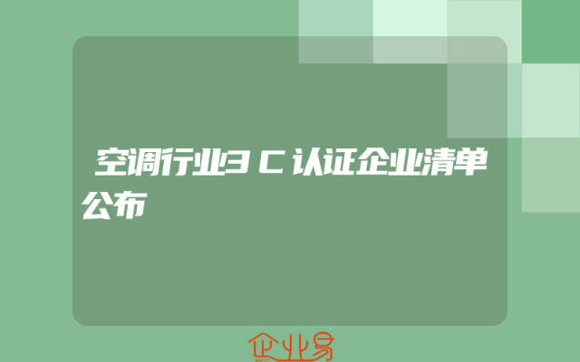 - 空调行业3C认证企业清单公布