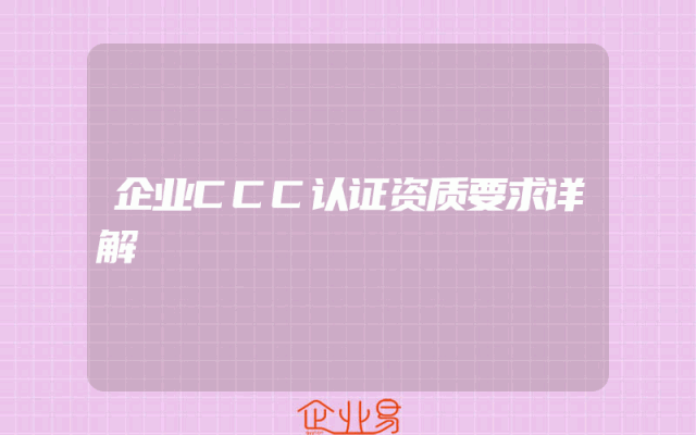 - 企业CCC认证资质要求详解