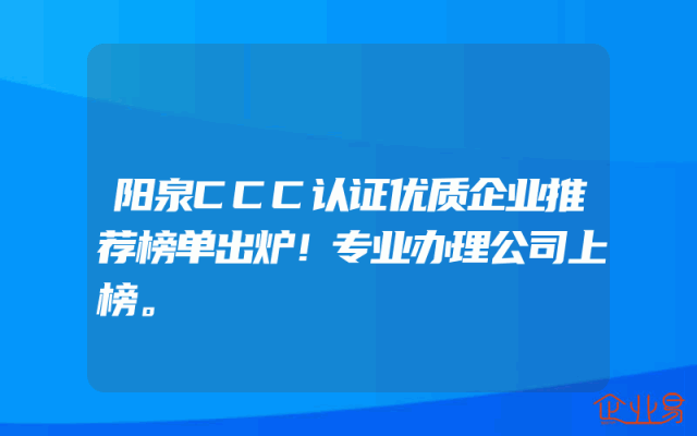 - 阳泉CCC认证优质企业推荐榜单出炉!专业办理公司上榜。