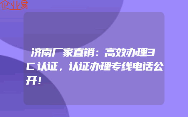 - 济南厂家直销:高效办理3C认证,认证办理专线电话公开!一、引言随着市场竞争的日益激烈,产品质量成为企业赢得消费者信任的关键。在中国,3C认证作为一种产品质量认证的重要形式,对于企业的产品上市和销售具有至关重要的意义。济南的厂家直销企业,深知