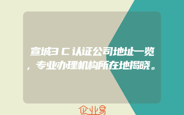 - 宣城3C认证公司地址一览,专业办理机构所在地揭晓。