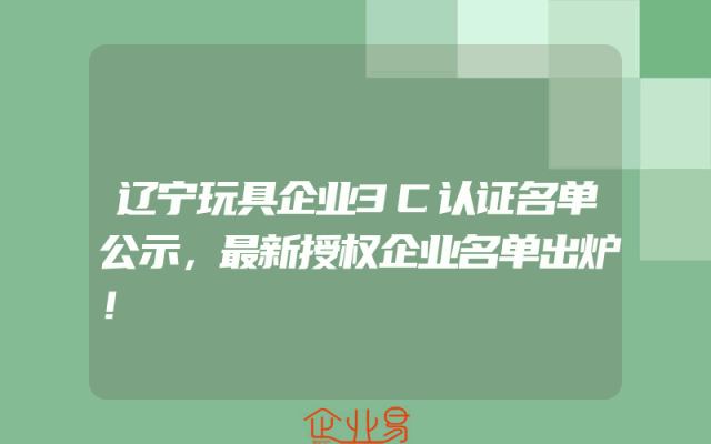 - 辽宁玩具企业3C认证名单公示,最新授权企业名单出炉!