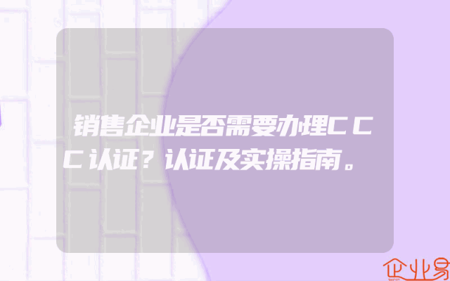 - 销售企业是否需要办理CCC认证?认证及实操指南。