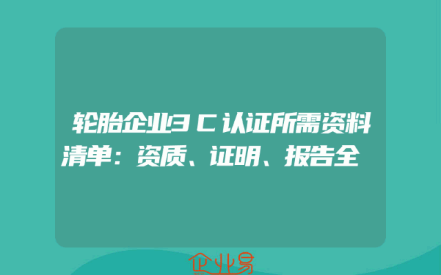 - 轮胎企业3C认证所需资料清单:资质、证明、报告全