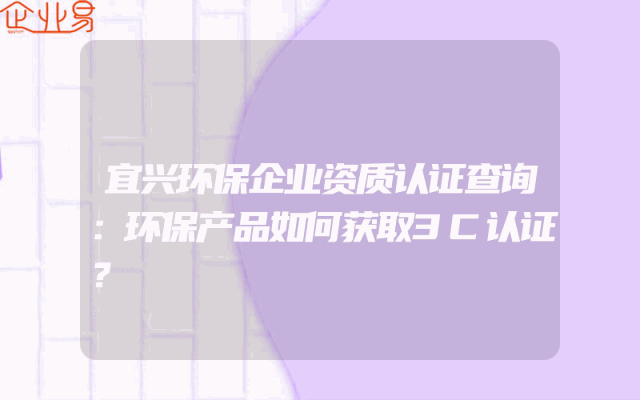 - 宜兴环保企业资质认证查询:环保产品如何获取3C认证?