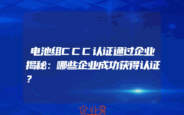 - 电池组CCC认证通过企业揭秘:哪些企业成功获得认证?