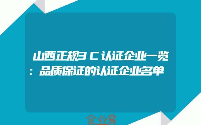 - 山西正规3C认证企业一览:品质保证的认证企业名单