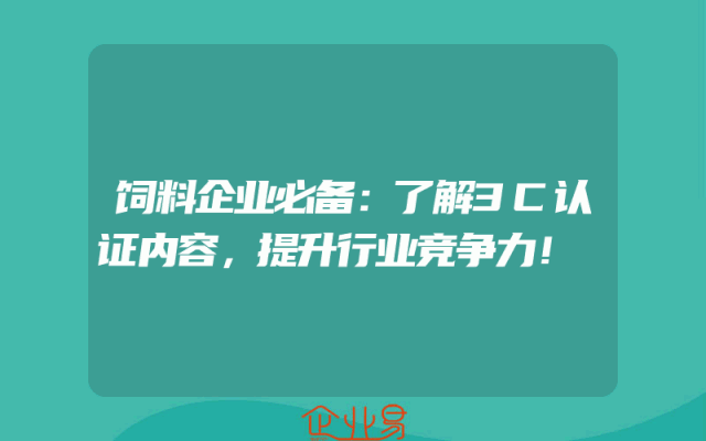 - 饲料企业必备:了解3C认证内容,提升行业竞争力!