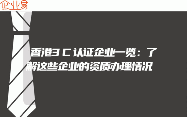 - 香港3C认证企业一览:了解这些企业的资质办理情况