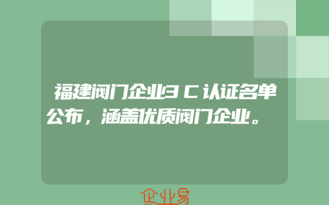 - 福建阀门企业3C认证名单公布,涵盖优质阀门企业。