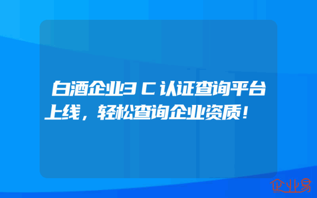 - 白酒企业3C认证查询平台上线,轻松查询企业资质!
