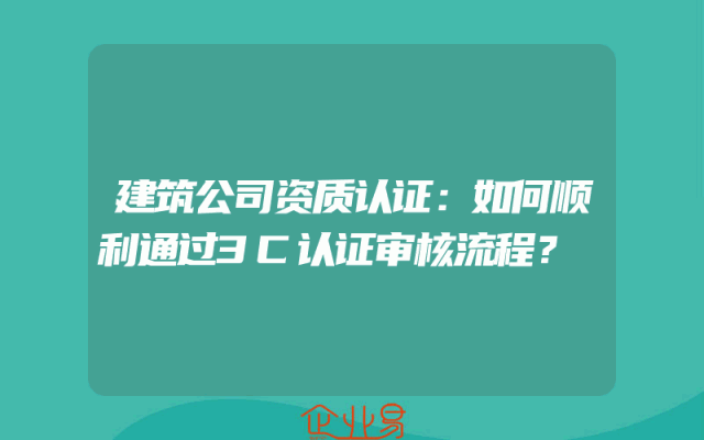 - 建筑公司资质认证:如何顺利通过3C认证审核流程?