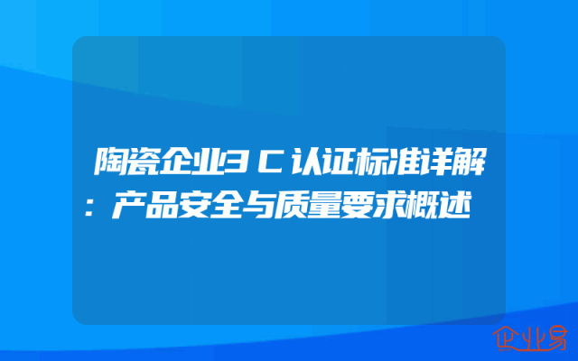 - 陶瓷企业3C认证标准详解:产品安全与质量要求概述