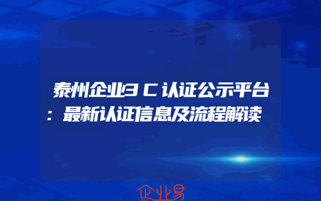 - 泰州企业3C认证公示平台:最新认证信息及流程解读